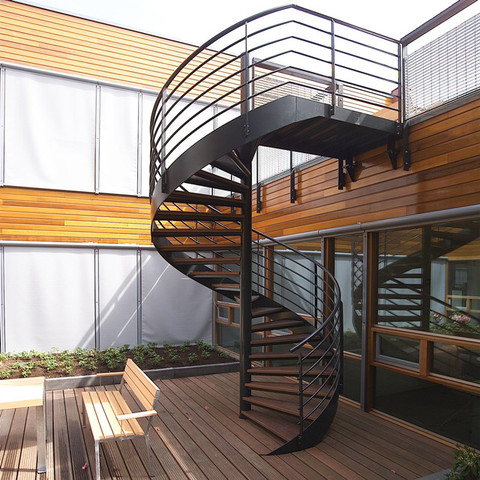 Salida de emergencia escalera de espiral diseño de escalera de acero al aire libre