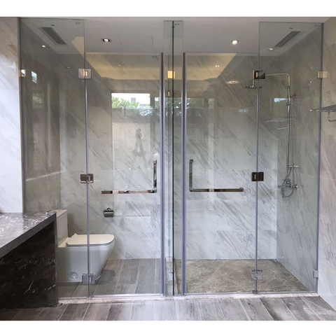 Ducha de vidrio templado sin marco con caja de cubículos de hardware SS Sri