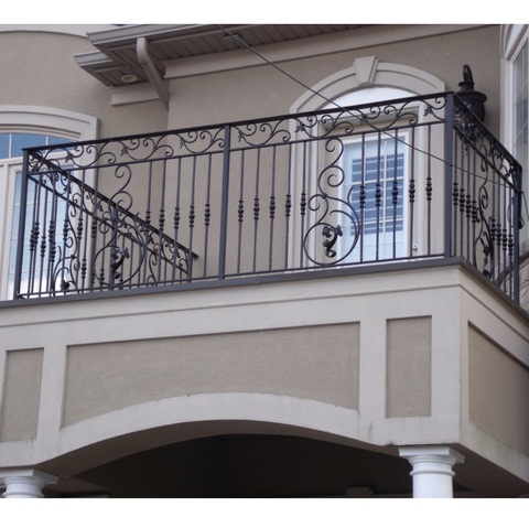 Outdoor Carbon Steel Wrought Iron Staircase Railing Accessories Balcony Application Iron Stair Railing Designs