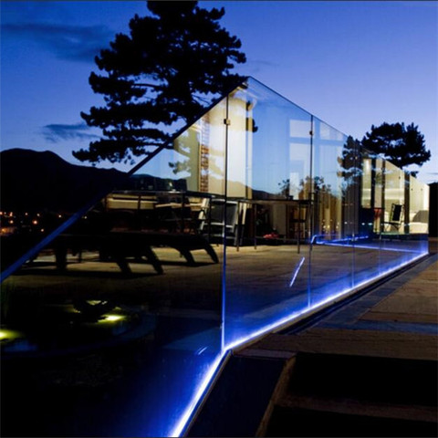 Moderno Ha Condotto La Luce U Canale di Basamento a Scarpa Ringhiera Temperato Balaustra Di Vetro