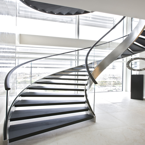 Escalera circular de vidrio de acero, diseño de escaleras curvas de vidrio