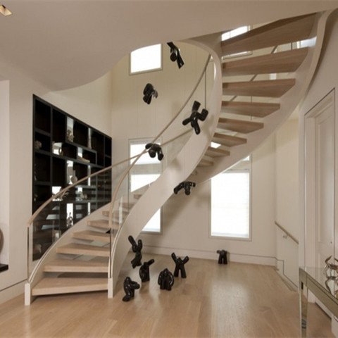 China Feito escada vidro guarda trilho madeira maciça curvada escada