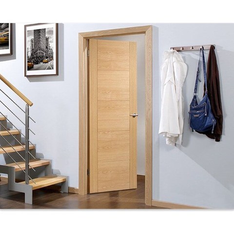 Porta contemporânea do folheado de madeira do carvalho para o projeto interior moderno Turquia estilo balanço aberto abertura lateral MDF Material superfície terminada