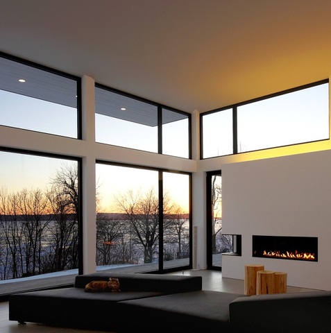 วิลล่าสไตล์อเมริกันกลางแจ้งขนาดใหญ่ถึงเพดานกรอบสีดำอลูมิเนียมเคลือบสองหน้าต่างกระจกคงที่